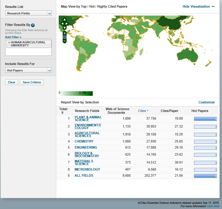 突破!我校“植物与动物科学”学科进入ESI全球排名前1‰