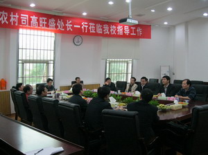 4月16日,科技部农村科技司综合计划处处长高旺盛一行在省科技厅农村处处长刘少君、副处长侯峻陪同下,来到我校考察科技工作。