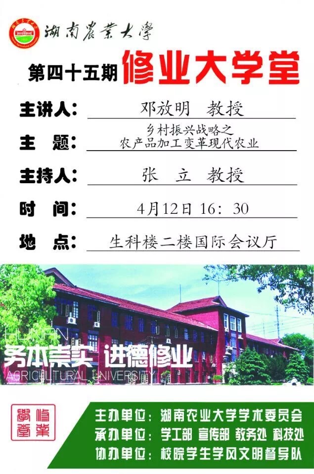 修业大学堂第四十五期——邓放明教授主讲《乡村振兴战略之农产品加工变革现代农业》