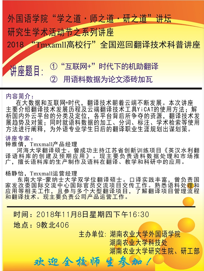 “Tmxmall高校行”全国巡回翻译技术科普讲座