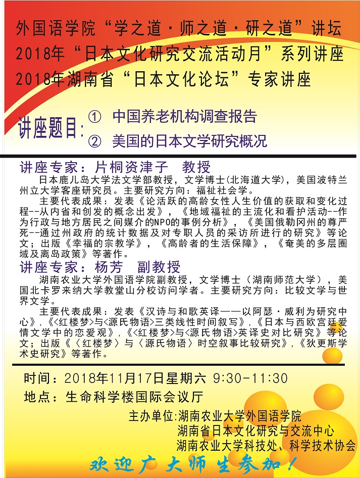 2018年湖南省“日本文化论坛”专家讲座暨2018年“日本文化研究交流活动月”系列讲座