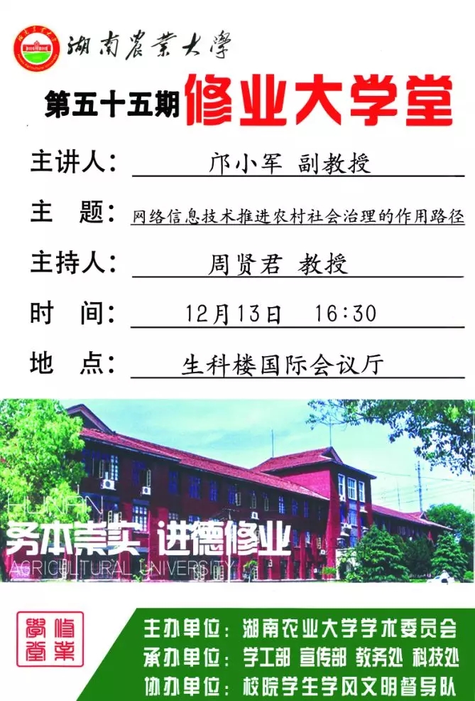 【修业大学堂第五十五期】邝小军副教授主讲:网络信息技术推进农村社会治理的作用路径
