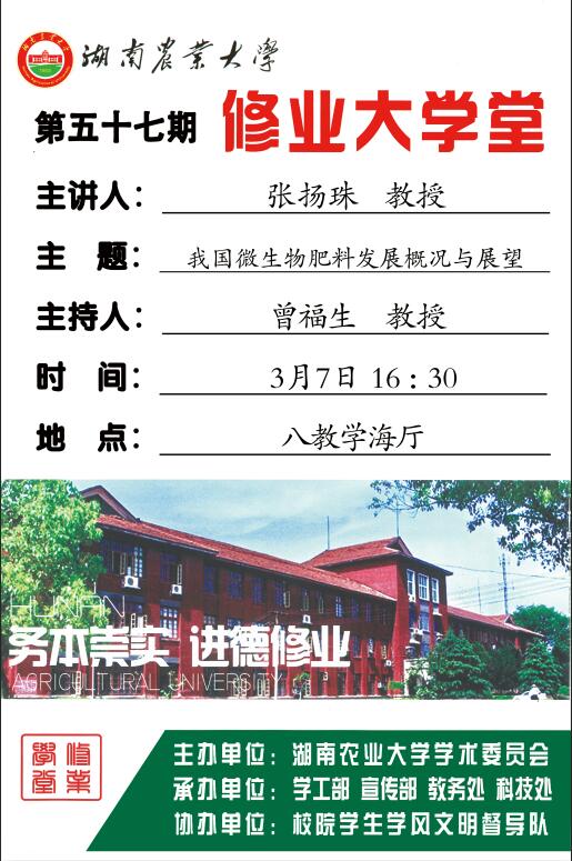 【修业大学堂第五十七期】张扬珠教授主讲:我国微生物肥料发展概况与展望