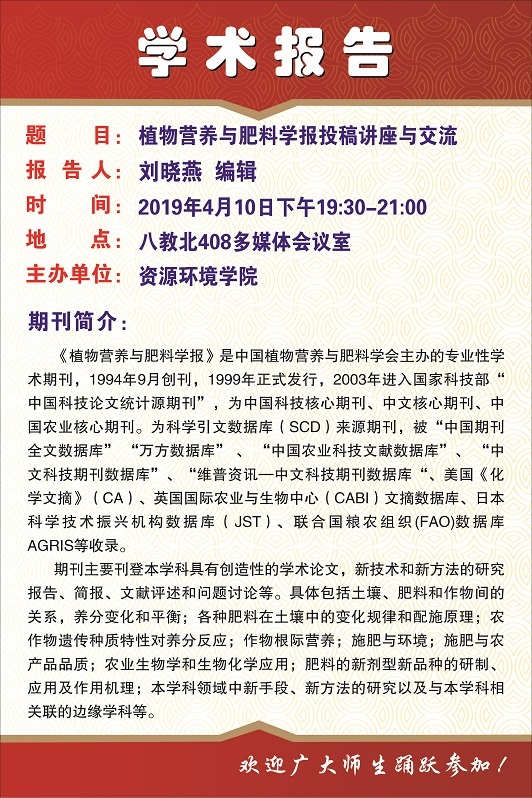 植物营养与肥料学报投稿讲座与交流
