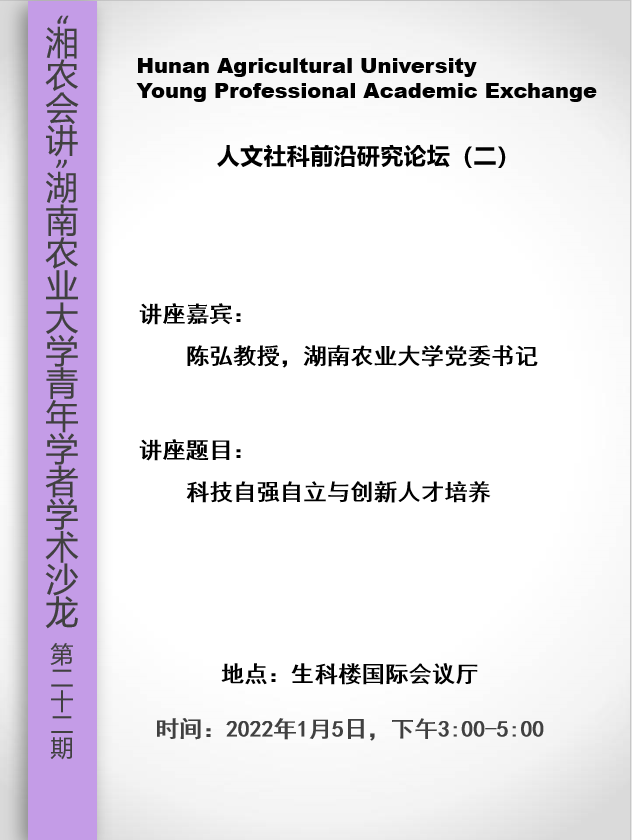 “湘农会讲”湖南农业大学青年学者学术沙龙----人文社科前沿研究论坛(二)